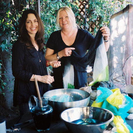 Fischer Karlsson is a line of stunning scarves created by luxury knitwear designer Susanne Cousins and costume designer Lisa Parmet. With their collective 40 years of experience in the design industry, Susanne and Lisa bring an elevated aesthetic to the world of high-end accessories. They studied images of the natural world as inspiration for their collection of individually hand dyed and hand printed cashmere scarves. There is a story behind each print.